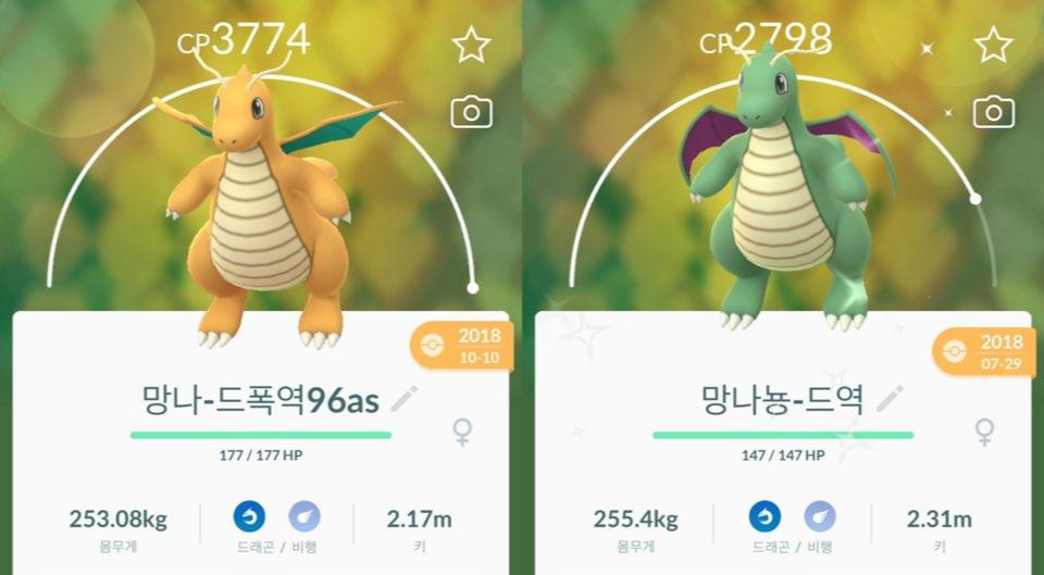 이 중, 드래곤크루를 배우고 있는 망나뇽은 저도 딱 하나 있을 정도로 옛날 포켓몬입니다.
