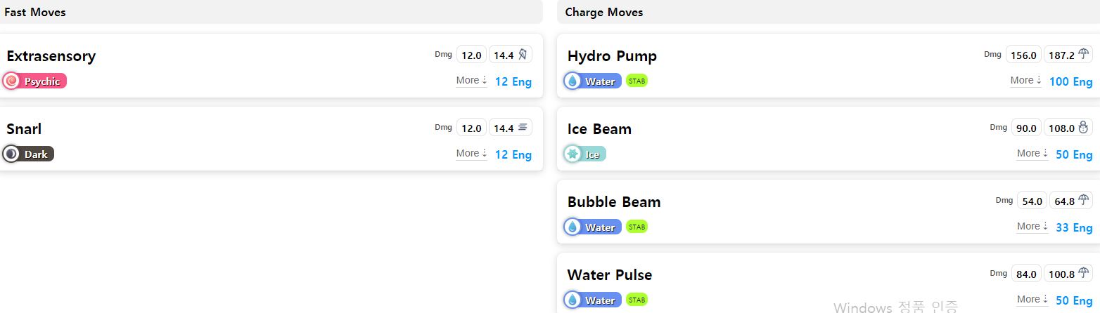 세대별로 컨셉이 비슷한 3마리의 포켓몬이 있어 다뤄보고 싶었으나, 포켓몬고에선 성능제일이기 때문에, 많이 안타까운 점도 있습니다.
