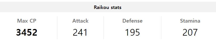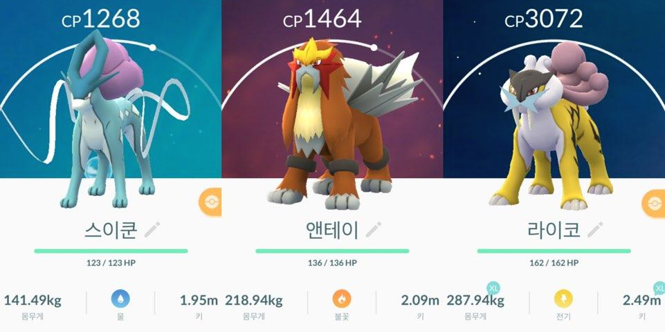 최대 CP는 앤테이가 가장 높지만, 공격 스탯은 라이코가 더 좋다는걸 알 수 있지요.
