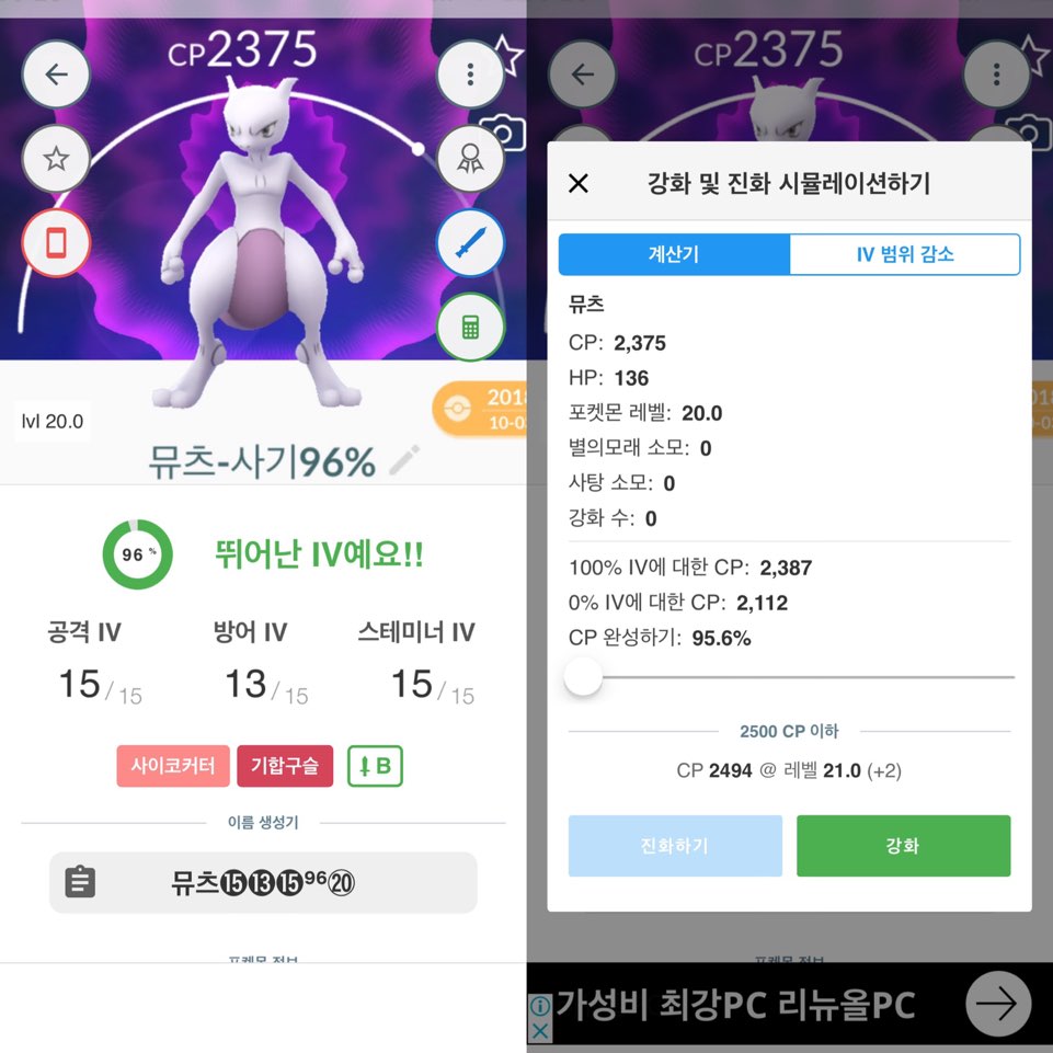 물론, 저도 포획을 했고 최대 개체값은 98%의 뮤츠를 보유하고 있습니다.